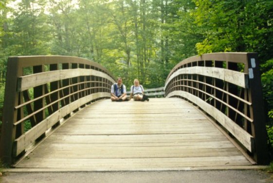 Pamela and Rob resting for a spell in the Cascade Trail bridge.