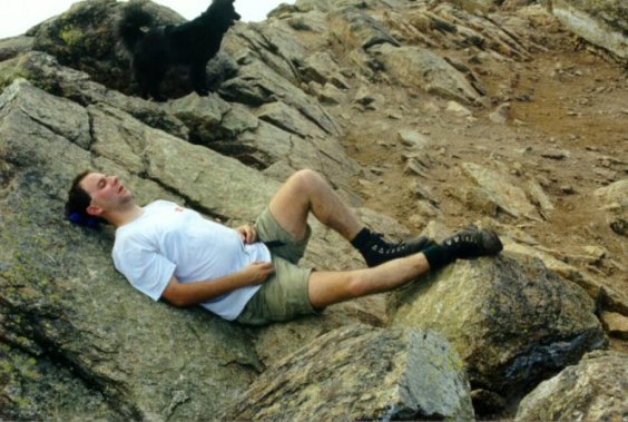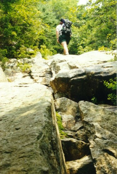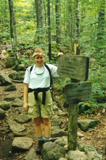 Pamela near the junction of the Flume slide and Liberty Spring Trail.