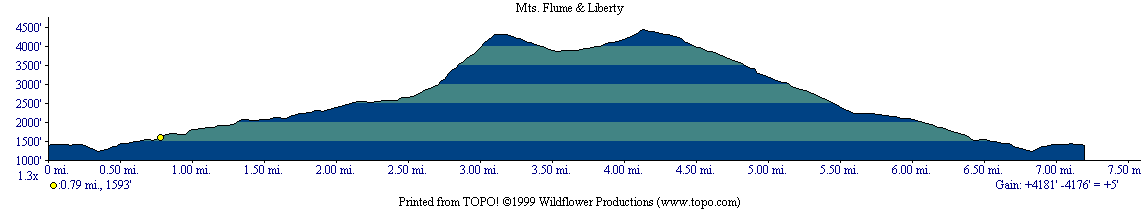 Note the flat part of the hike at the start and the quick, steep uphill. Then notice the long steady downhill.