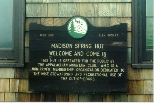 Hike-NH.com Hut Experience – The Madison Spring HutAs you may have read from the Mt. Madison Trip Report, our hike to the Madison Spring Hut was fraught with challenges and difficulties, so arriving at the hut was quite a relief. Read on and you’ll see what it’s like to spend a night in these jewels of the mountains. At about 4:00 PM on Friday afternoon, we arrived at the Madison Spring Hut. We were immediately greeted with the friendly sign that you see below, welcoming us to the Madison Hut. As we entered, we met a few people that had arrived before us. One, a professor at Dartmouth, was enjoying a book, while others were milling about trying to figure out how they were going to survive a night without the distraction of their TV or Internet connection (sense the irony there?). We entered through the dining area, naturally next to the kitchen, which is where two of the hut "Croo" were preparing food. We dropped our packs and grabbed a seat at one of the tables.
