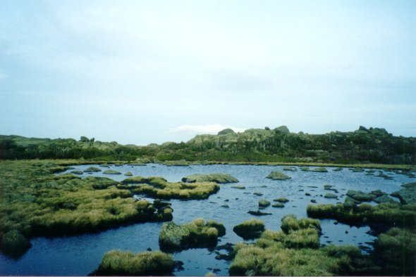 At this point dinner was quickly approaching, so we made our way back to the dining area to relax and enjoy the feast. Croo members Pete and Alex promised us more food than we could possibly eat and we were ready for the challenge. Once we found a spot, we sat and talked, and watched as people started pouring into the hut for the night. After another hour, we quickly realized that we were different in some way from the other people arriving at the hut. At first it was difficult to identify, but it slowly became obvious that we were about the only two people there who hadn’t found it necessary to pack up some form of alcohol. We spotted Nalgeneâ bottles filled with wine, flasks of whiskey, and even a can of beer or two. We were astounded that people would hike four miles into the mountains and trade water for alcohol. But then we found out that most of these people were a group of lawyers – no wonder they needed the alcohol, they probably hated being around themselves (kidding guys! You will not sue, you will not sue . . .) Dinner was excellent. Vegetarian chili (which we were dreading, but turned out to be very good), baked bread, peas and carrots (Forrest would have been in heaven), garden salad, hot cocoa, water, and bread pudding for dessert. Everything was well prepared and the right temperature (chili=hot salad=cold). All in all, dinner was very good. After the feast it was time to relax, digest, and chat with the other folks in the hut. We talked with our professor friend about a number of things, the lawyers about nothing in particular, and even met some guys that work in our industry. Everyone was very cordial and conversations were easy. Just before dusk, the resident naturalist, Brian Howser took those of us who were interested on a little hike up to the tarn just above the hut. The weather had subsided and the winds had dropped below 70 mph, so we attended with pleasure. We learned about Diapensia, and other mountain plants, the tarn and how it was formed, the moss covering some rocks, and a variety of other things. Brian was very patient and answered everyone’s questions. A quick walk back at dusk and we were approaching dark.