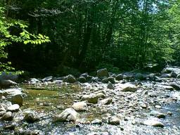 I hiked through a corner of the Pemi Wilderness a couple weeks ago, but this was the first time that I ever penetrated to the heart of this forest. I remember looking down on these woods last summer and earlier this year from atop the peaks that ring the Wilderness. Now I was traipsing right through all the streams and ponds and bogs that weren't visible through the treetops. I especially enjoyed stopping at the ponds and bogs. Everything is bright green and so alive. Dozens of white & pink Lady Slippers flanked the trails in these wet and spongy areas. And toads! Seemed like I couldn't walk 3 yards without almost stepping on one. I also couldn't help but notice all the moose sign. Huge hoof prints were everywhere! I expected to see a moose around every bend in the trail. Unfortunately (or maybe fortunately), I didn't see any Bullwinkles. I made several small stream crossings without any delay or difficulty. Two crossings of the Lincoln Brook, however, required bare feet. I was careful and choose sections where the water didn't reach much above my knees. The cold water on my feet and legs felt excellent on this hot & humid day! And I felt pretty smart for bringing the towel along. The only downside to these river crossings came when I had to stop and dry off on the opposite banks. Mosquitoes bit the Hell out of me anytime I stood still for more than 30 seconds.
