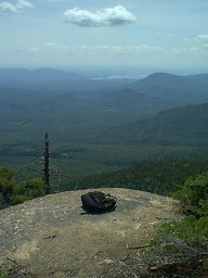 rest here, drink some more water, and have a power bar. The views out to Lake Winnipesaukee were outstanding. There was also an older guy with a white beard stretched out on part of the ledge, and next to him was this real cute blonde dressed in cut off jeans and a white midriff shirt. She was about my age, and I assumed she was his daughter… but who knows. I don't hike to pick