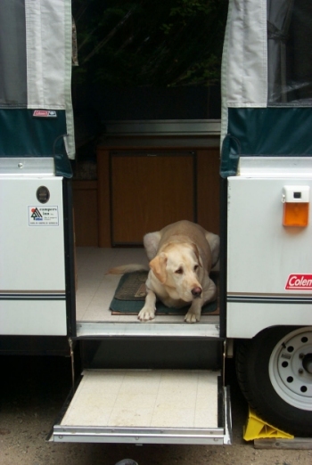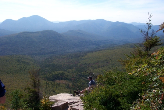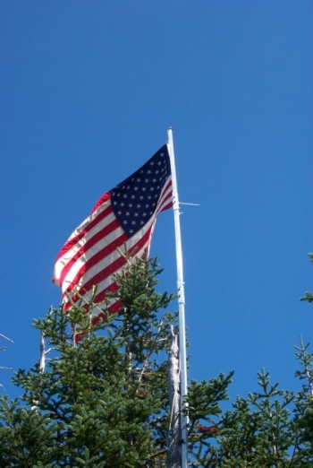 Before too long, Dome and Pete got bored with the viewless summit and headed back to the ledge where there was something to see. Chris and Rob kept the flag flying, and when it was time to go, we packed up and went to find Pete and Dome. Feeling rested, we all headed back for the parking area. We couldn't resist another stop at the Zeacliff, but it was very crowded by this time and the dogs were trying to eat the cute high school girls resting there. We moved on down the trail, and aside from Kaia nearly giving some poor lady a heart attack near the Zealand hut, and Chris breaking his elbow when he slipped off a rock, the descent was pretty humdrum. By the end of the hike, Bailey needed to be lifted into the Durango, and the rest of us were not far behind. We were proud to take part in the Flags on the 48 hike, and we'll participate again next year. The event was honorable, and we would like to see more of our friends and neighbors taking part. If you would like more information on the Flags on the 48 event, go to http://www.flagsonthe48.org.